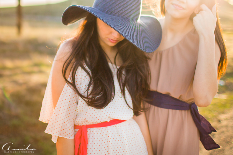 I bet you can guess these two are sisters.Sassy ladies in the sun! I love the light peeking through Victoria’s hat.