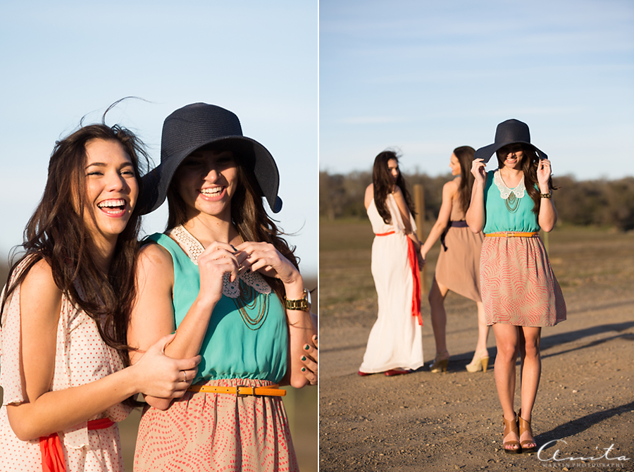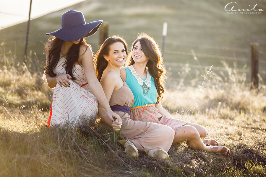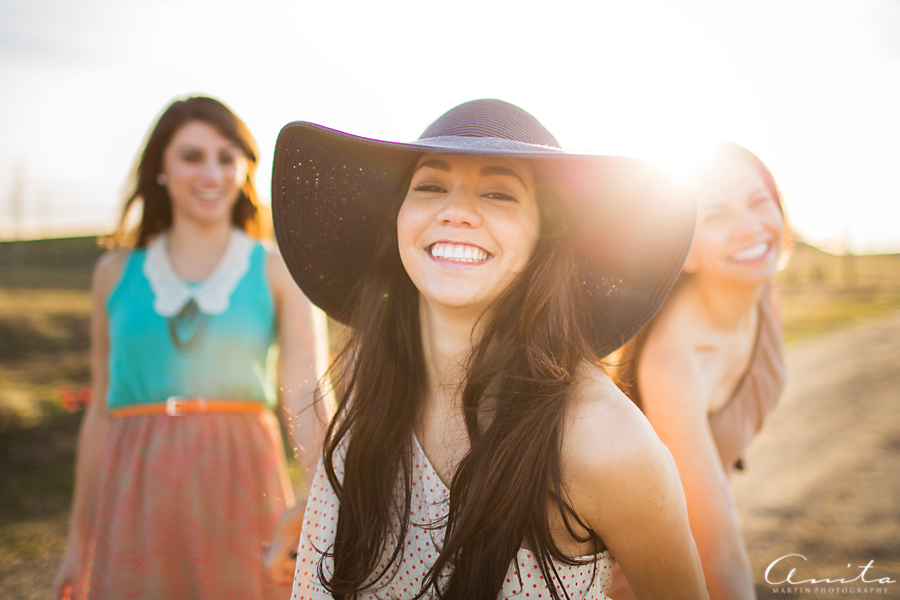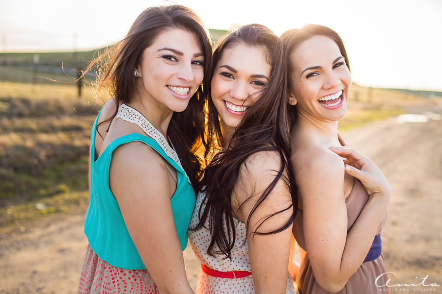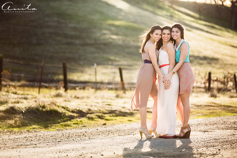 I love that I could give these gorgeous girls some photos to document their friendship 🙂  I am also excited about the golden light and beauty in these images.  These girls are beautiful on the inside, where it counts, and I am happy to present to you Victoria, Christina, and Mary.  We headed out to a dirt road in the middle of nowhere.  The drive was scenic and the girls giggled about the roller-coaster roads.  The sun shone brightly and the air was crisp.