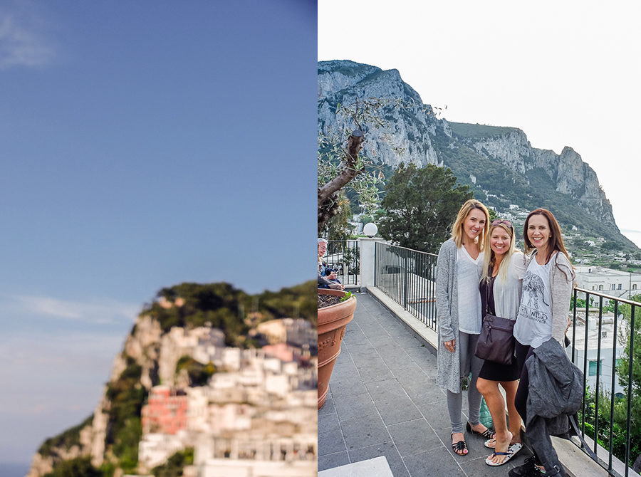 Almost two years ago I had the awesome pleasure of flying to Italy with two of my besties , Jo Clark and Bre Thurston, for 10 days of adventure (and to assist my girl Bre Thurston shoot an amazing wedding in Rome). Our trip flew by. We laughed until we cried, laughed again, and laughed some more. Our first day was a long day of travel. We flew from SFO to Rome. Then we hopped on a train and headed south to Naples. Once in Naples we cruised in a ferry to Capri. After 20 hours of planes and trains and ferries we finally arrived at the cutest hotel overlooking the harbor. Our tired selves were rewarded with a delicious meal with a view of the ocean. Pure bliss.