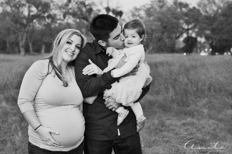 I have had the incredible honor of photographing Sydney’s daughter from newborn to age one (and you can find baby C all over my blog 🙂 ) and I was THRILLED to be able to take her maternity photos for baby number two. We set up a sunset maternity shoot for their whole family, and Sydney, Ben, and little C met me in Folsom. We actually shot these images in less than 15 minutes as the sun slipped below the horizon, allowing us to capture the amazing color in the sky. I heart this girl and her family.